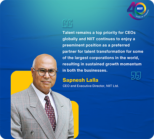 NIIT’S subsidiary, NIIT Institute of Finance, Banking and Insurance (NIIT IFBI) entered into partnerships with HDFC Bank and Kotak Mahindra Bank to build new age Digital Talent in fintech and data engineering roles for the banking industry. It also joined hands with Bajaj Finserv to scale up the reach of Bajaj Finserv's Certificate Program in Banking, Finance, and Insurance (CPBFI).