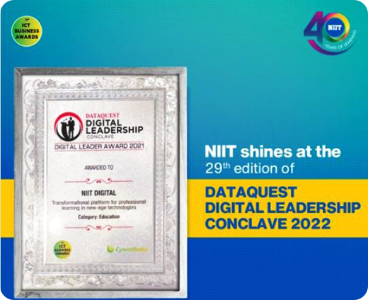 | NIIT awarded the ‘Transformational platform for professional learning in new-age technologies’ at the Digital Leadership Conclave 2022 by Dataquest |
