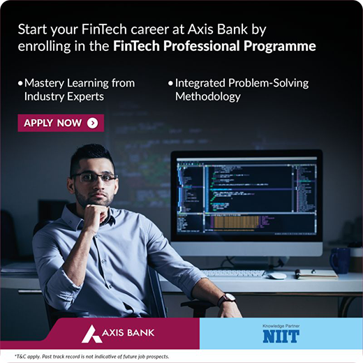 For the quarter NIIT Institute of Finance Banking and Insurance (NIIT IFBI) and Axis Bank launched a FinTech Professional Programme under the Axis Bank - NIIT Digital Banking Academy. The course is designed to build future ready FinTech Professionals for Axis Bank.