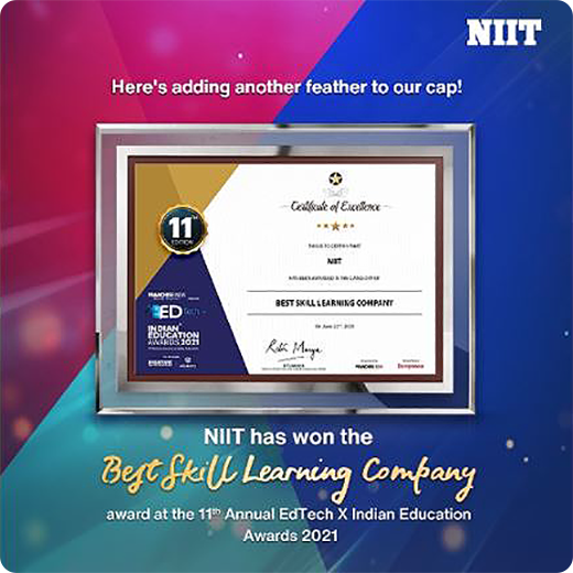 NIIT won the 'Best Skill Learning Company' award at the 11th Annual EdTech X Indian Education Awards 2021. The award was felicitated at a virtual ceremony organized on June 25, 2021.