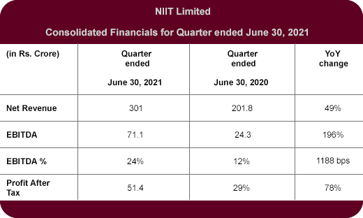 | NIIT Limited announces Q1 (April - June 2021) Consolidated Results |
