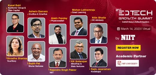 Following on the success of the first edition of its EdTech Growth Summit in 2022, NIIT Ltd has announced the second edition of the EdTech Growth Summit. Aimed at fostering innovation and entrepreneurship in the education ecosystem, the Summit will be organised virtually on March 14, 2023. Selected start-ups from the Growth Summit will get an opportunity to present their business plans to investors and the NIIT Group at the Growthcamp to be organised at the NIIT University in Neemrana from 5th to 7th April 2023.
