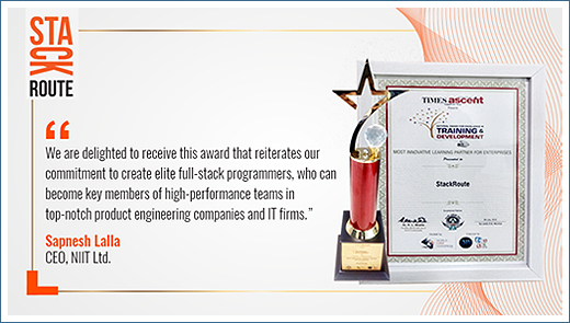 - StackRoute – NIIT's deep skilling initiative on digital technology, has won the 'Most Innovative Learning Partner for Enterprises' award at Times Ascent - National Award for Excellence in Training & Development