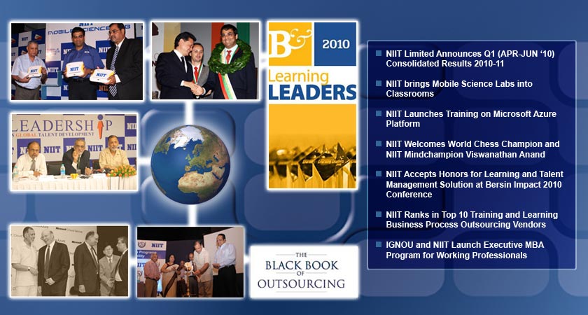 NIIT was ranked in the top 10 of The Black Book of Outsourcing's annual ranking of Top Training and Learning Business Process Outsourcing Vendors. The Black Book HRO industry recently announced the results of the survey, which investigated more than 400 contracts held by 216 user organizations, conglomerates and corporations globally, in 2009.