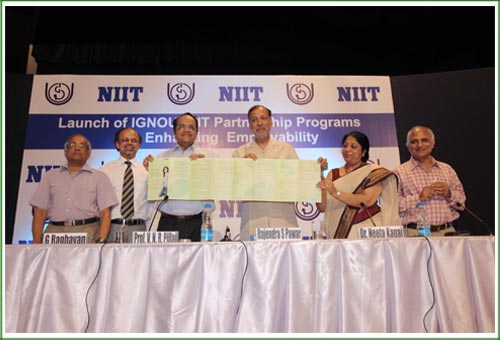 IGNOU- world’s largest Open University and NIIT launched industry-linked Partnership Programs for enhancing employability of the youth. The Partnership Programs were unveiled by Prof. V.N. Rajasekharan Pillai, Vice-Chancellor, IGNOU and Mr. Rajendra S Pawar, Chairman, NIIT. Also present on the occasion were Mr. Shashi Bhushan, Reader, SOCIS, IGNOU; Dr Neeta Kapai, Head, Campus Placement Cell, IGNOU and Mr. G. Raghavan, President-Global Individual Learning Business, NIIT.