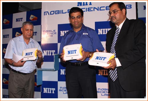 NIIT, in association with Fourier Systems, a worldwide leader in science education, demonstrated Mobile Science Lab for schools- an innovative learning solution which integrates Science Lab with classrooms. World Chess Champion and NIIT MindChampion Viswanathan Anand unveiled this revolutionary solution in seminars conducted in Delhi, Bangalore and Mumbai, highlighting the importance of 24*7 experiential learning. Also present were Sanjiv R Pande, President, School Learning Solutions & HiWEL, NIIT Ltd, Ms. Tamar Antokol, Director – Sales, Fourier Systems and Mr.Yariv Baryam, VP Sales & Marketing Fourier System.