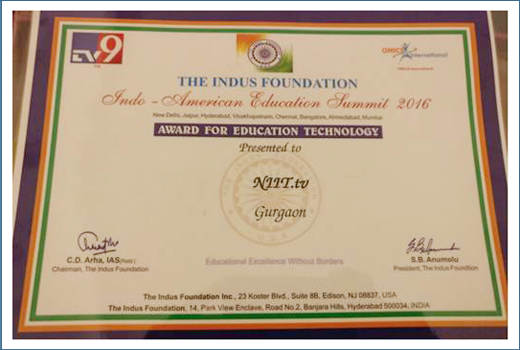 NIIT.tv – won the prestigious award for ‘Educational Technology, at the Indo-American Education Summit 2016. The award is a recognition of NIIT.tv’s effort to make quality skill-based training available to every digitally connected Indian anytime, anywhere using a cutting-edge technology platform.