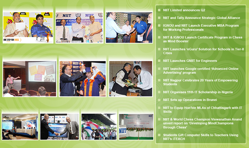 During the quarter, NIIT strengthened its offerings in the IT space with the launch of GNIIT for Engineers, an industry-endorsed program designed to enhance employability of engineering graduates. The company also entered into an alliance with Tally, to create skilled workforce for Small and Medium Businesses.