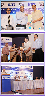IGNOU- world’s largest Open University and NIIT launched an industry-linked Partnership Programs for enhancing employability of the youth. The Partnership Programs were unveiled by Prof. V.N. Rajasekharan Pillai, Vice-Chancellor, IGNOU and Mr. Rajendra S Pawar, Chairman, NIIT. Also present on the occasion were Mr. Shashi Bhushan, Reader, SOCIS, IGNOU; Dr Neeta Kapai, Head, Campus Placement Cell, IGNOU and Mr. G. Raghavan, President-Global Individual Learning Business, NIIT.