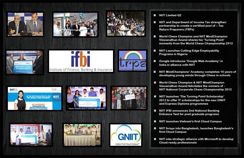 Despite a challenging market environment, NIIT improved its market share from 50% to 54% in the IT education space (Ref. Dataquest, September, 2012). NIIT’s strategic decision to focus on the four platforms of growth – Cloud Campus, Managed Training Services, Nguru & NIIT Yuva Jyoti - continued to drive the business momentum for the company.