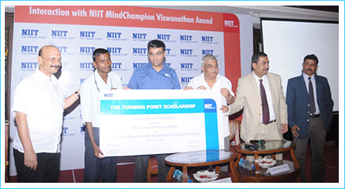 The Turning Point Scholarship, instituted by NIIT to commemorate the phenomenal victory of NIIT MindChampion Viswanathan Anand at the 2012 World Chess Championship, was unveiled in Kerela. This initiative by NIIT is aimed at giving an opportunity to meritorious candidates from economically disadvantaged sections of society aspiring to make a mark in the IT industry, a platform to realize their dreams. Anand personally presented the Scholarship to a beaming Clinta P B on behalf of NIIT, at a function organized in the city.