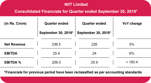 | NIIT Limited announces Q2 (July - September 2019) Consolidated Results |