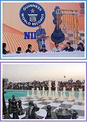A new world record was created at Swarnim Chess Mahotsav 2010 Gujarat on December 24, 2010, with 20,480 players playing simultaneous Chess at Gujarat University Grounds in Ahmedabad. The earlier record was of 13,446 players at Mexico City in 2006.