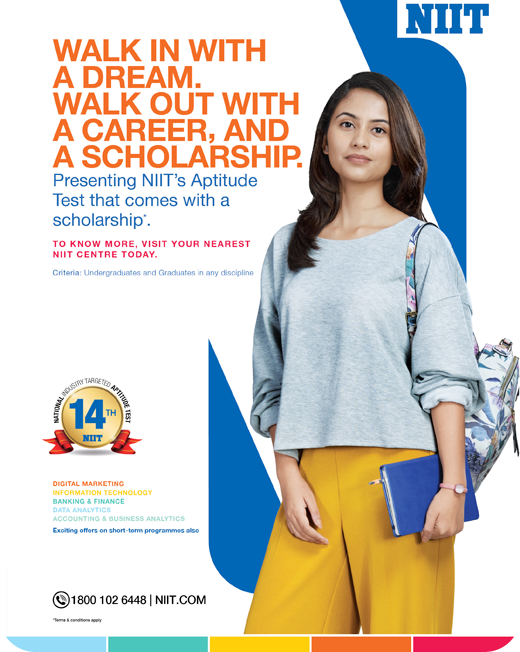 NITAT aims to address this growing need by identifying a ready talent pool for immediate absorption by the industry. The test has been designed as an objective test and assesses the behavioural and functional parameters of the students to provide an insight into their natural inclination to a specific career. Every student will receive a personalised score card. NIIT will also award up to 40% scholarship to the meritorious students.