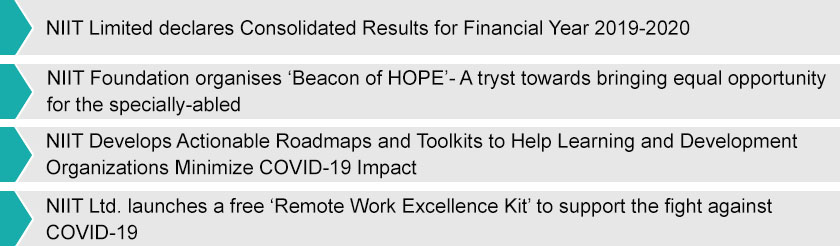 During the quarter, in response to the COVID-19 pandemic, NIIT developed a set of actionable roadmaps, toolkits and packaged services to help Learning and Development (L&D) organizations minimize the disruption caused due to the accelerating impact of the crisis.